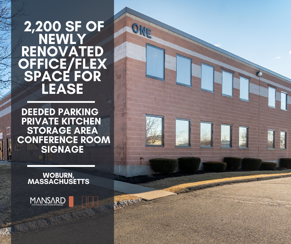 1 Presidential Way gives companies 2,200 square feet for rent in Woburn, This property is ideal for small businesses searching for high quality space.